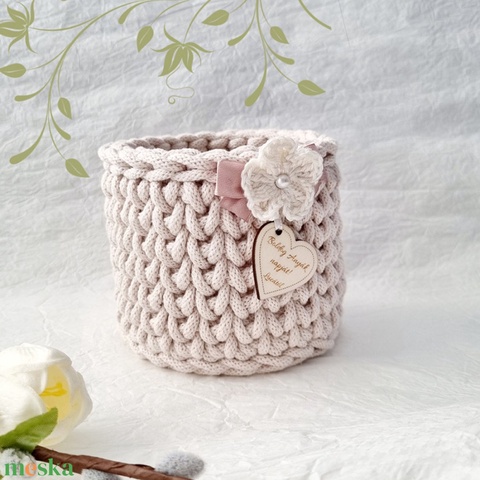 Horgolt tárolókosár egyedi felirattal. Ajándék anyák napjára