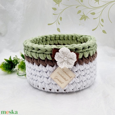 Horgolt tárolókosár egyedi felirattal. Ajándék anyák napjára