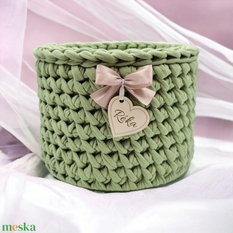 Horgolt tárolókosár egyedi felirattal. Ajándék anyák napjára
