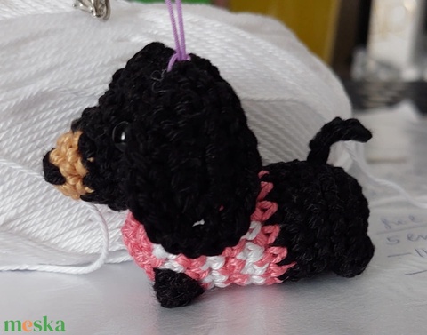 - Anyag/Összetevő pamut fonal, biztonsági szem, tömőanyag, kulcstartó akasztó