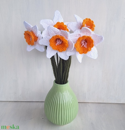 Horgolt nárcisz - fehér