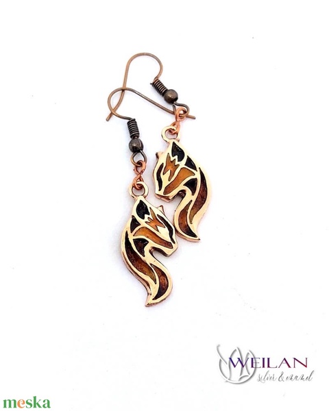 Karminca Tűzmacska - bronz tűzzománc fülbevaló (barna - narancs - arany)