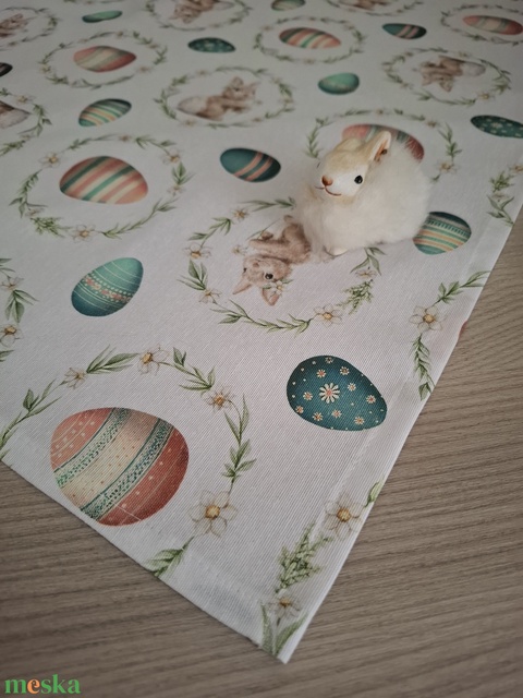 Húsvéti asztalközép nyuszkós, fehér, pasztelles színvilágban