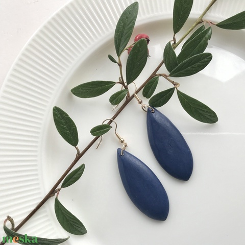 Fából készült csepp alakú fülbevaló sötétkék színben