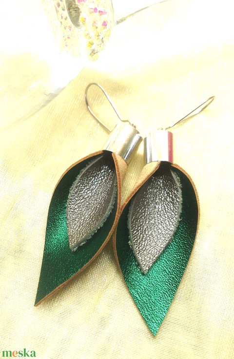 Türkiz-zöld - ezüst bőr fülbevaló - ajándék - Anyák napja- születésnap