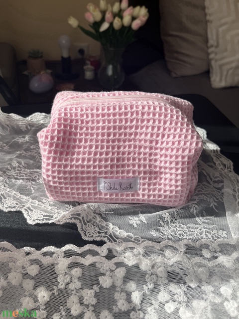 'Aurora' Beauty Case pamut waffle babarózsaszín neszesszer