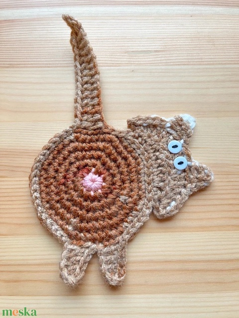 Horgolt cica poháralátét, egyedi darab.