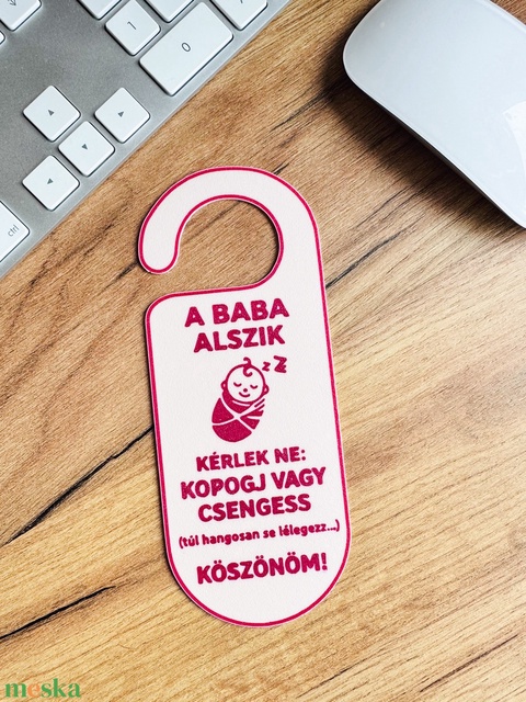 A baba alszik – ajtóra akasztható tábla vicces, praktikus babás ajándék