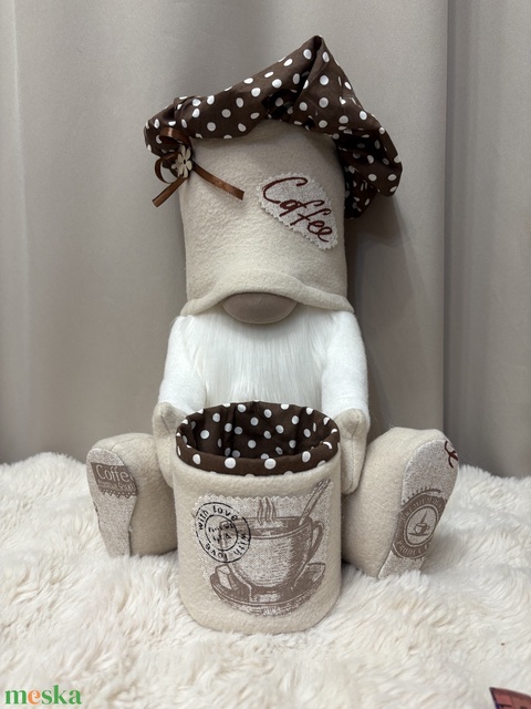 Ülő kávès manó. Dobozzal. 35 cm