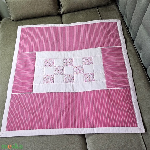 Vintage hatású rózsaszín babatakaró, játszópléd patchwork betéttel kislánynak