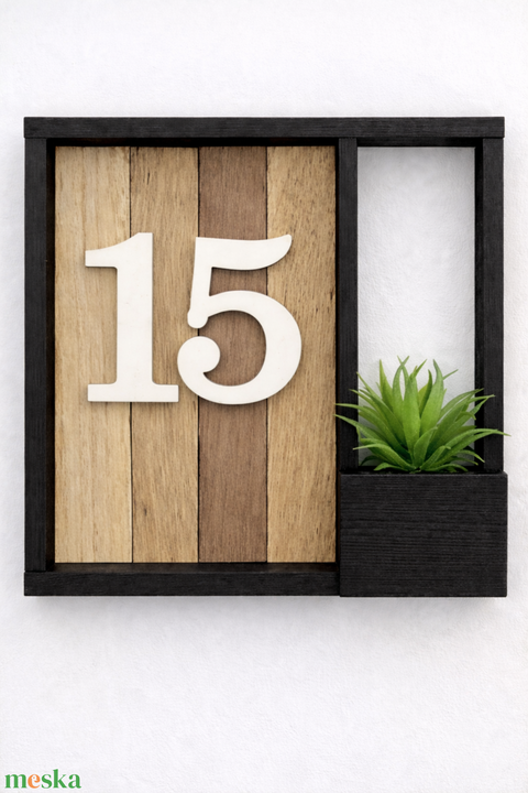 - Anyag/Összetevő léc, ragasztó, lézervágott díszes szám, festék, műnövény