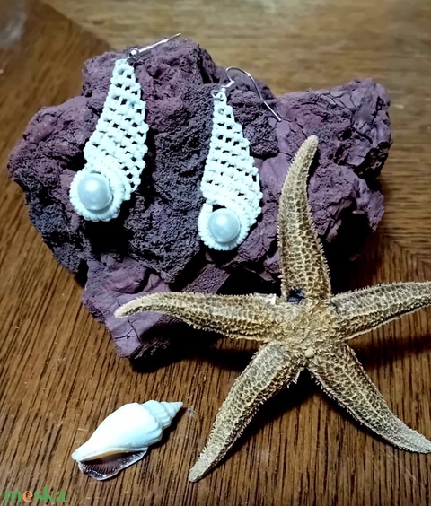 Kagyló mintás makramé fülbevaló