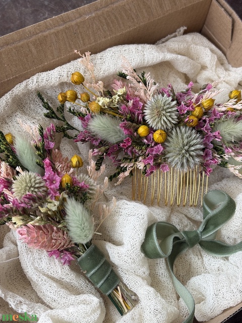 Szárazvirág fejdísz szett