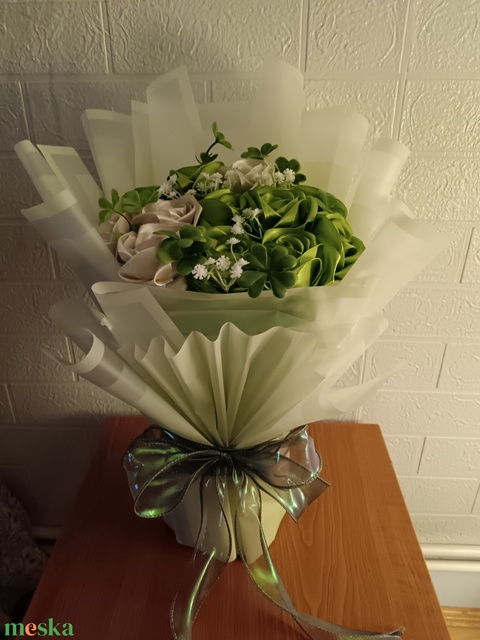 - Anyag/Összetevő szatén, csomagoló ív, lóhere dísz