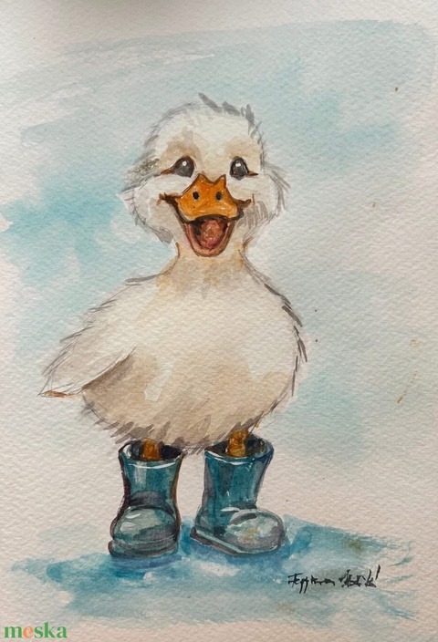 Gumicsizmás kiskacsa- akvarell