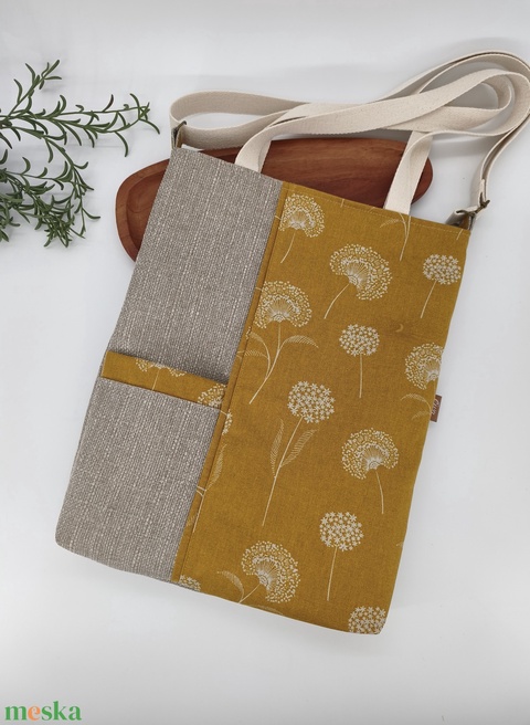 Vászontáska / Shopper táska - Pitypang mintás szatyor, dupla pánttal
