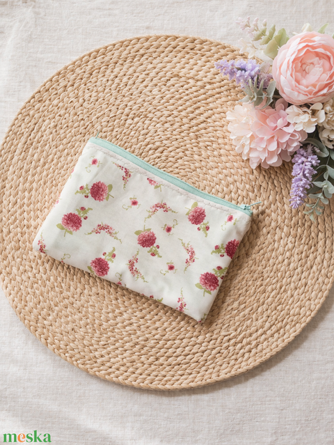 Apró Virágos Neszesszer - Pénztárca - Kártyatartó - romantikus neszeszer - virág mintás piperetartó - aprópénz tartó