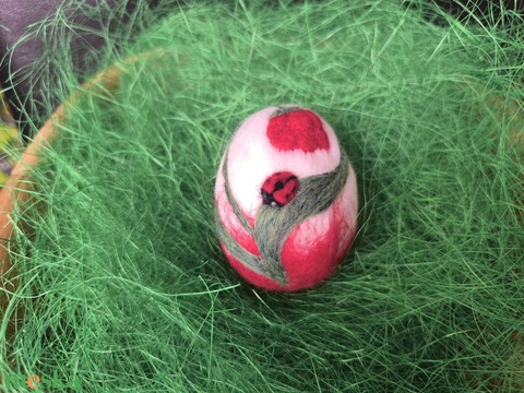 Húsvéti tojás tűnemezeléssel - Piros virág és katica