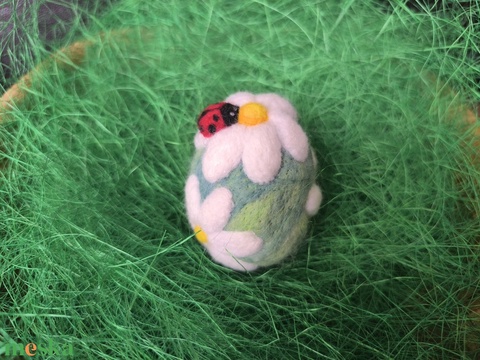 Húsvéti tojás tűnemezeléssel - Virágos katicával