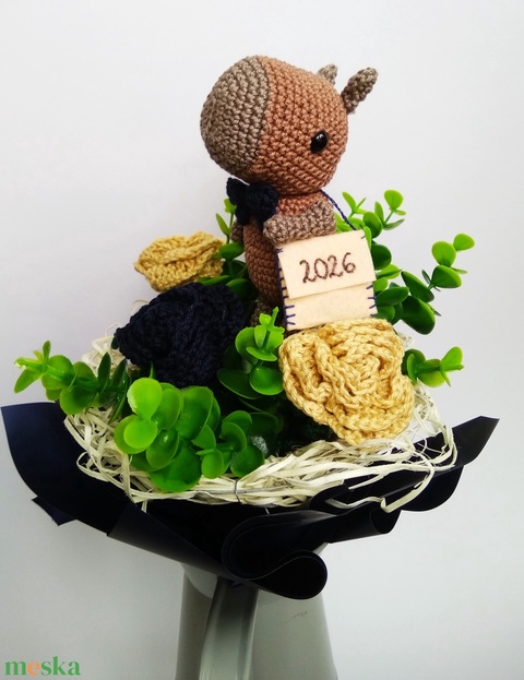 Horgolt ballagási capybara csokor- horgolt virágokkal, egyedi kézműves ajándék