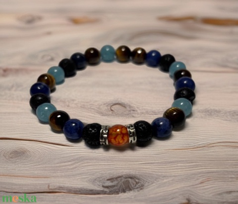 Theta ásványkarkötő - föld és ég - Szodalit, lávakő, tigrisszem, jáde akvamarin és sárkány achát