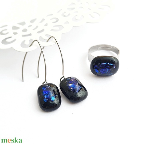 Türkiz-kék-fekete színjátszó Dichroic üveg ékszerszett