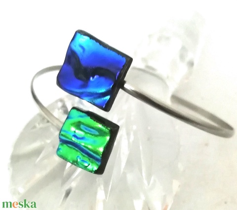 AKCIÓ! Nemesacél kék-zöld kockák trendi karkötő.