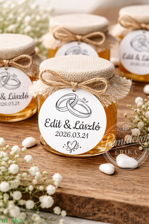 Egyedi, VÍZÁLLÓ Esküvői, eljegyzési Köszönetajándék Matrica (5 cm.).