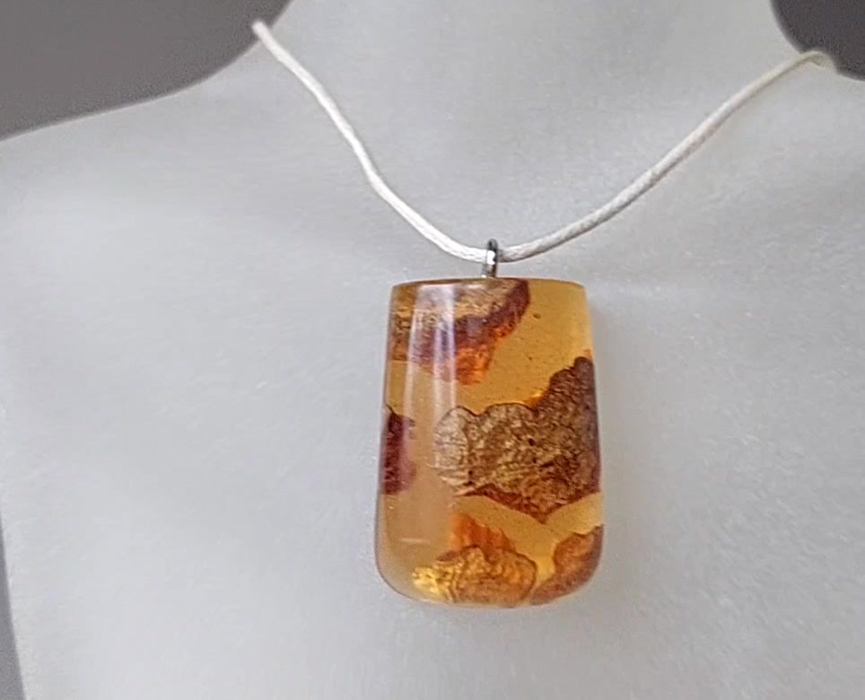 Narancssárga műgyanta nyaklánc toboz darabokkal