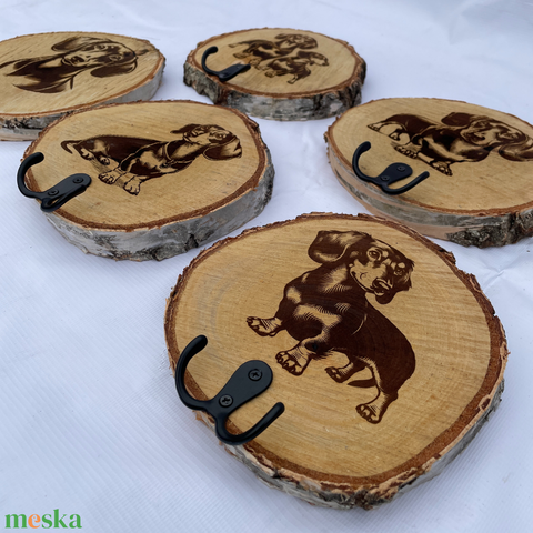 Tacskó mintás gravírozott fa korong pórázakasztóval