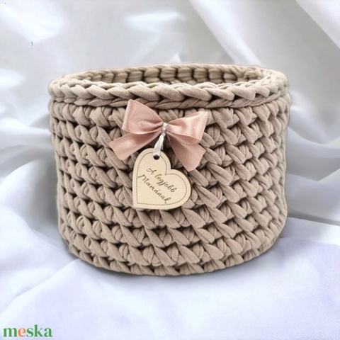 Horgolt tárolókosár egyedi felirattal. Ajándék anyák napjára