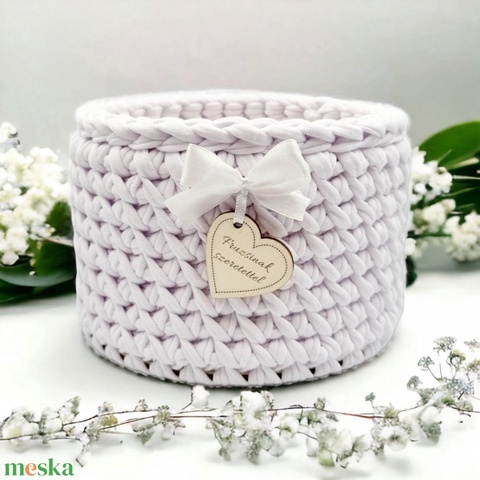 Horgolt tárolókosár egyedi felirattal. Ajándék anyák napjára