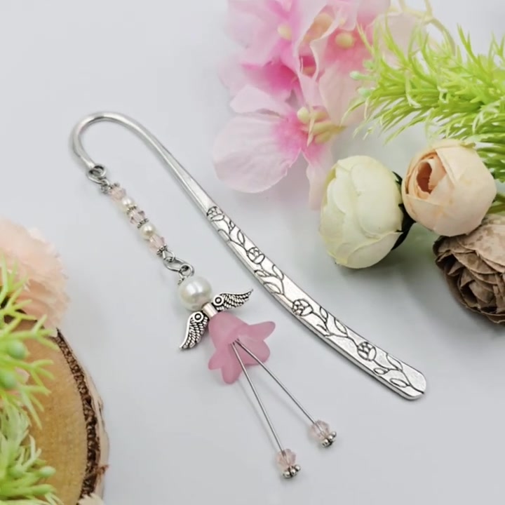 "Deborah" - könyvjelző rózsaszín akril angyalkával