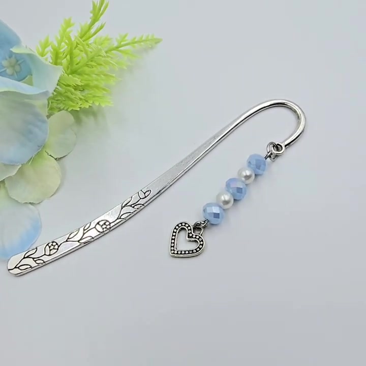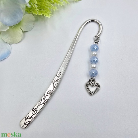 "Juliet" - könyvjelző csillogó kék csiszolt gyöngyökkel, szív charmmal