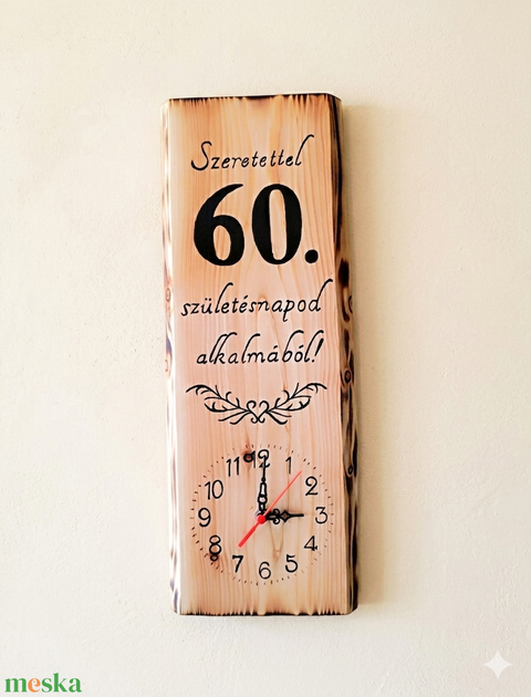 Kézműves ajándék fa falióra 60. születésnapra