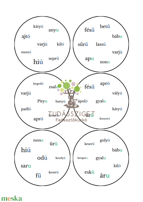 Szóvégi magánhangzók Dobble 8 szóval