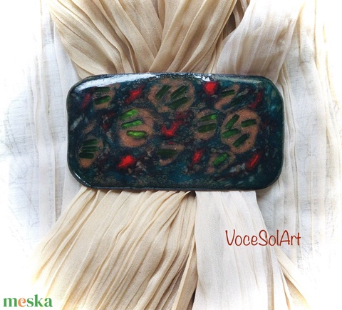 - Anyag/Összetevő vörösréz, ékszerzománc, iszapzománc, franciacsat alap, üveggyöngy