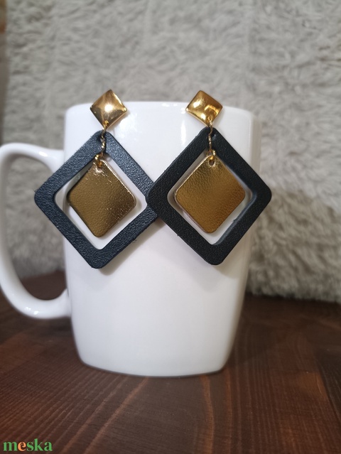 Fekete -arany szögletes bőr füli