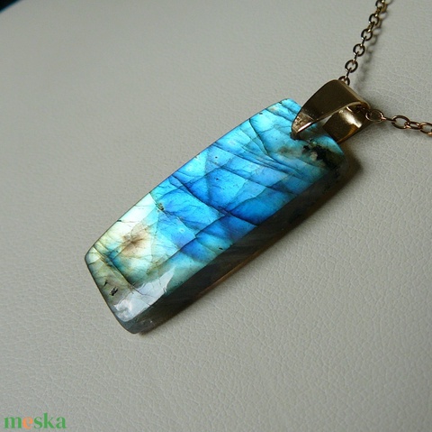 Orvosi acél szerelékre akasztottam ezt a különlegesen szép labradorit medált.