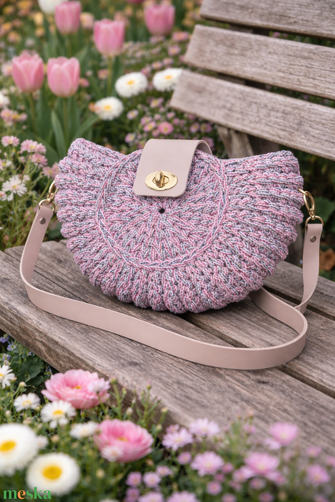 Egyedi, kézzel horgolt designer táska pasztell részletekkel