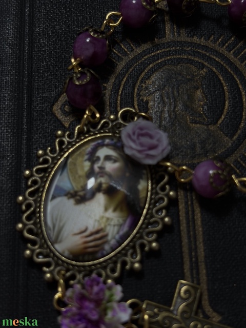 Jézus Szentséges Szíve egytizedes, lila spodumen ásvánnyal