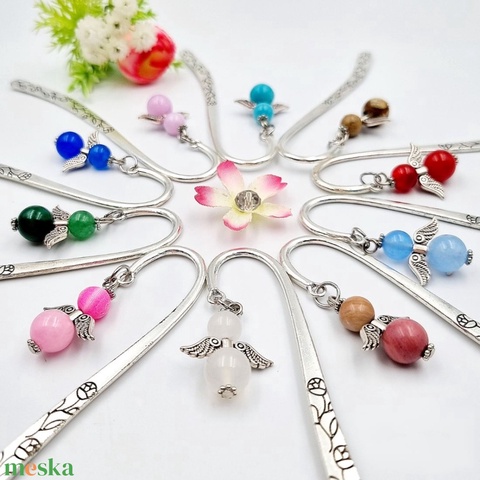10 db angyalkás könyvjelző - vegyes ásványgyöngyből