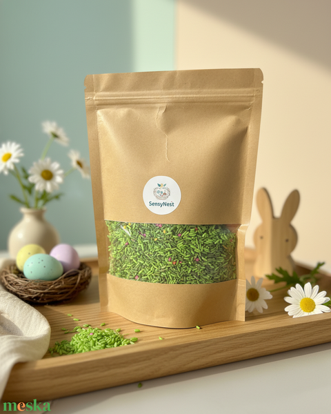500 g szenzoros alap "Tavaszi rét", festett rizs, csicseriborsó, csillag alakú tészta. Három különböző textúra tavaszi pasztell színekben. A festést nem a hagyományos ételfestékkel végzem, hanem MUCKI ujjfestékkel, mely speciálisan gyermekek számára lett kifejlesztve 2 éves kortól. Dermatológiailag tesztelt, paraben mentes, glutén- és laktózmentes, vegán alapanyagokból készültek.