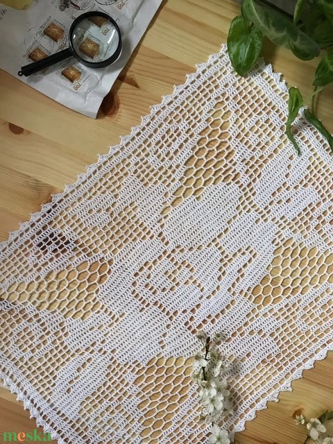 Pamut csipketerítő rózsa mintával – 44 × 32,5 cm