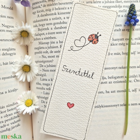 Akvarell könyvjelző - "Szeretettel" felirattal, katicával, szív motívummal