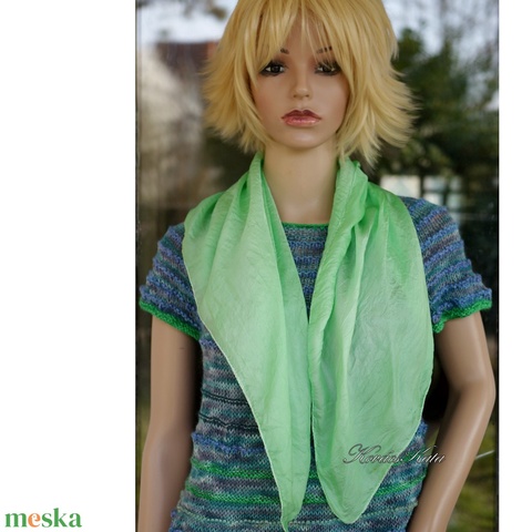 HABOTAI KENDŐ - batikolt hernyóselyem pille-kendő / tavasz-zöld