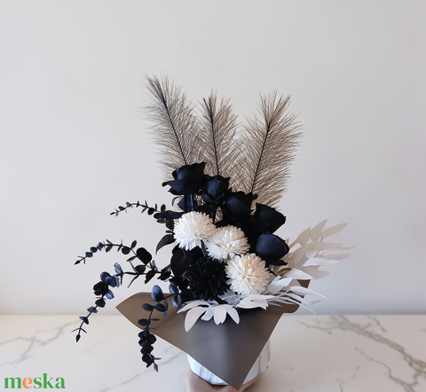 - Anyag/Összetevő kerámia kaspó, műviragok, egyéb díszítő elemek
