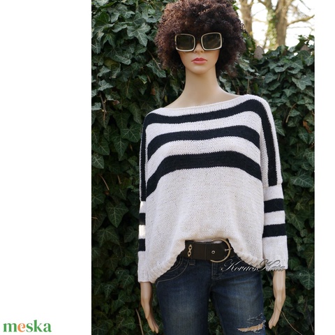 TENNIS L - kézzel kötött kasmír-merinó-akril flowing pulóver