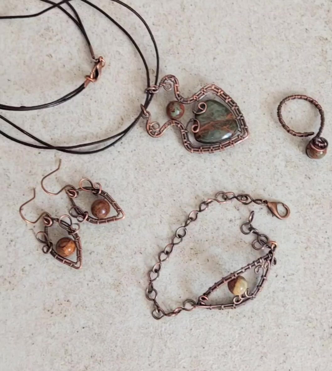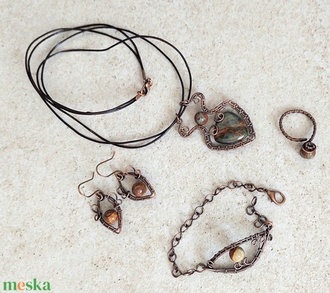 Zöld opál vörösréz ékszerszett