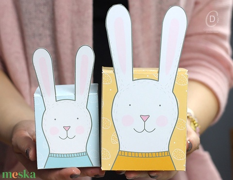 Húsvétra nyuszis ajándékdoboz, tojásgyűjtő, csináld magad, digitális, letölthető, nyomtatható